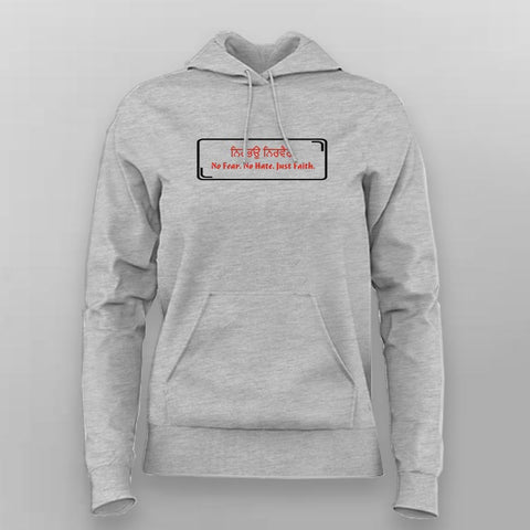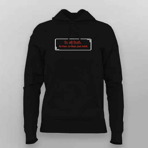 The No Fear. No Hate. Just Faith. Hoodie For Women is crafted for strength, peace, and comfort. Featuring “ਨਿਰਭਉ ਨਿਰਵੈਰ” — meaning “Without Fear, Without Hate” — this hoodie radiates calm confidence.