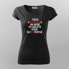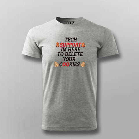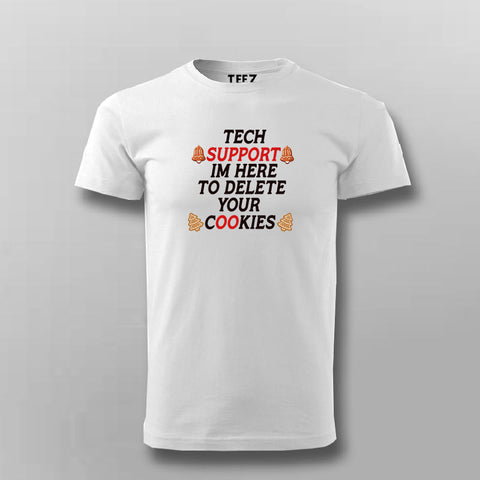 The Tech Support T-shirt for Men from Teez.in is the perfect blend of geek humor and casual comfort. Printed with “I’m Here To Delete Your Cookies,” it’s a clever pun that every developer and techie will love.